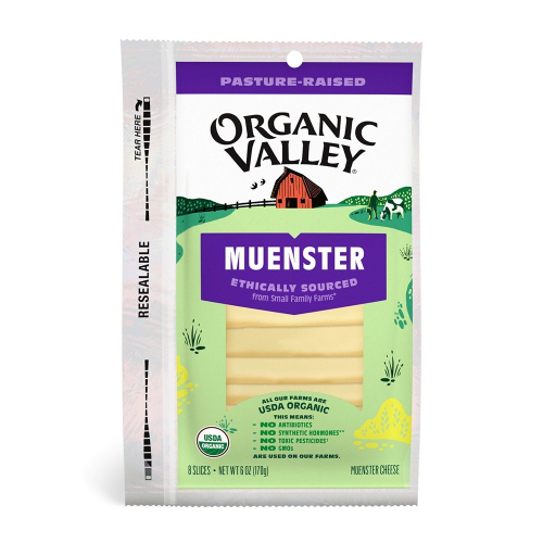 採用素食成分和有機胭脂樹橙製成,讓您更加安心。明斯特起司可以讓三明治增添奶油味,而且它還可以與水果、餅乾和其他零食完美搭配。