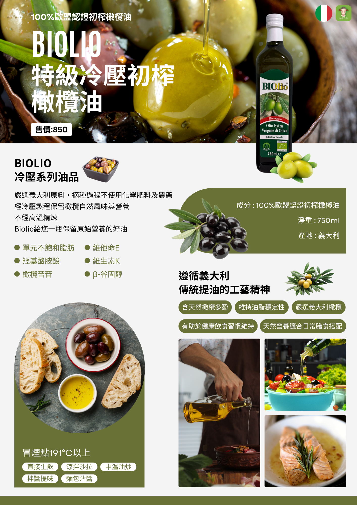 嚴選義大利Biolio第一道冷壓初榨橄欖油
