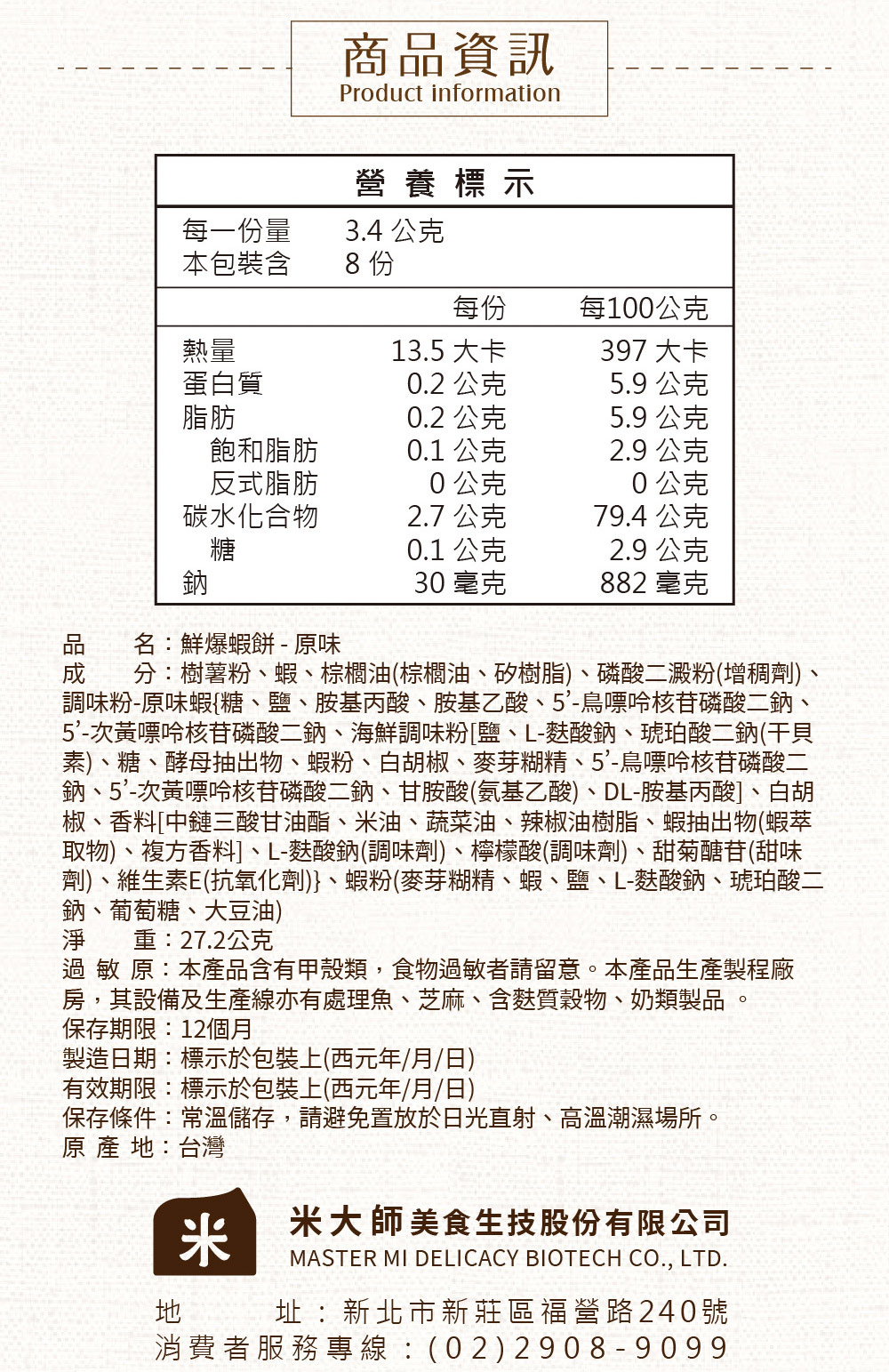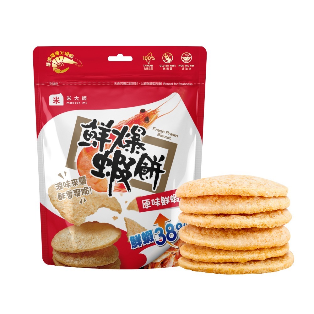 米大師特別,採用「火燒蝦」以全球獨家首創的高壓無油烘培製程技術,調製出