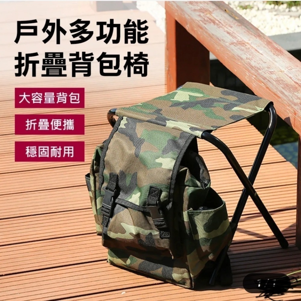 【Suntime】戶外二合一多功能雙肩後背包迷彩折疊椅/椅凳