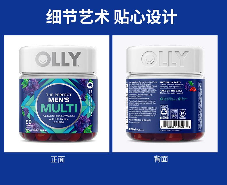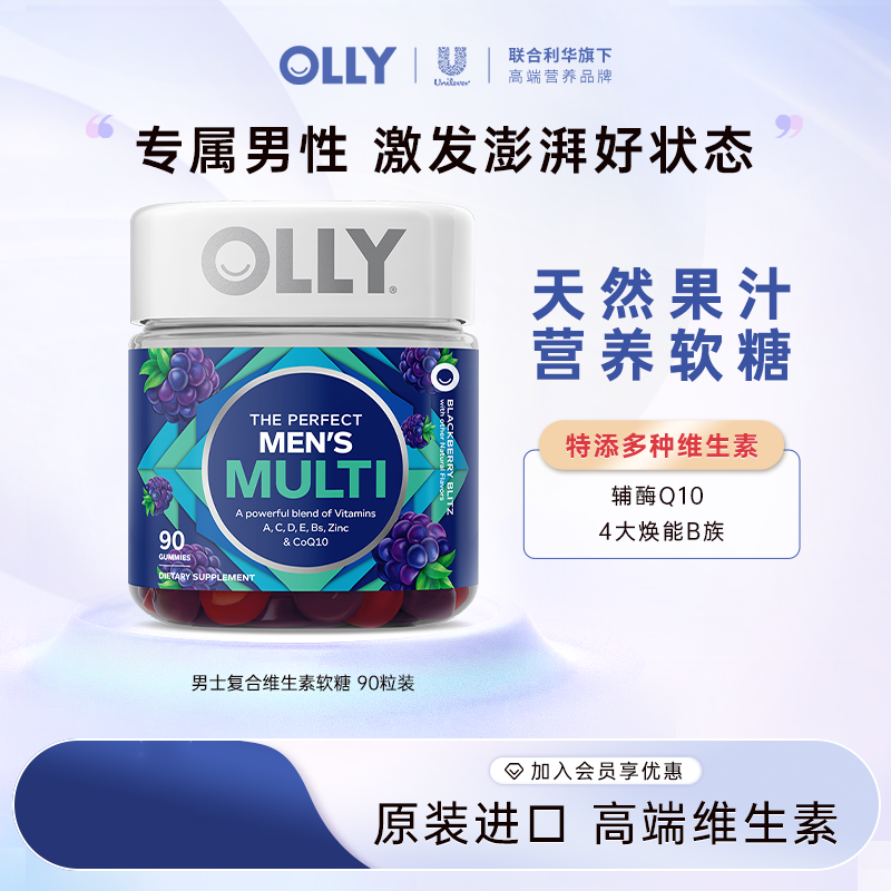🖐全館免運🚚OLLY男士營養複合維生素葉酸軟糖VB12成人輔酶Q10 90粒瓶 七老闆 七老板 三只羊 瘋狂小楊哥