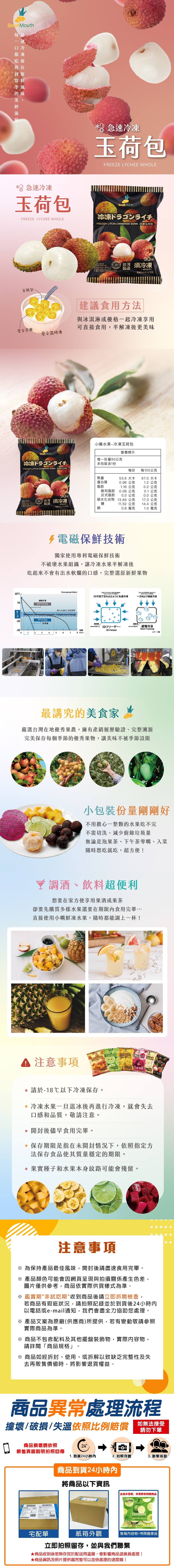 保存方式:冷凍-18℃保存,開封後請盡早食用完畢。冷凍水果一旦退冰後再進行冷凍就會失去口感和品質,敬請注意。