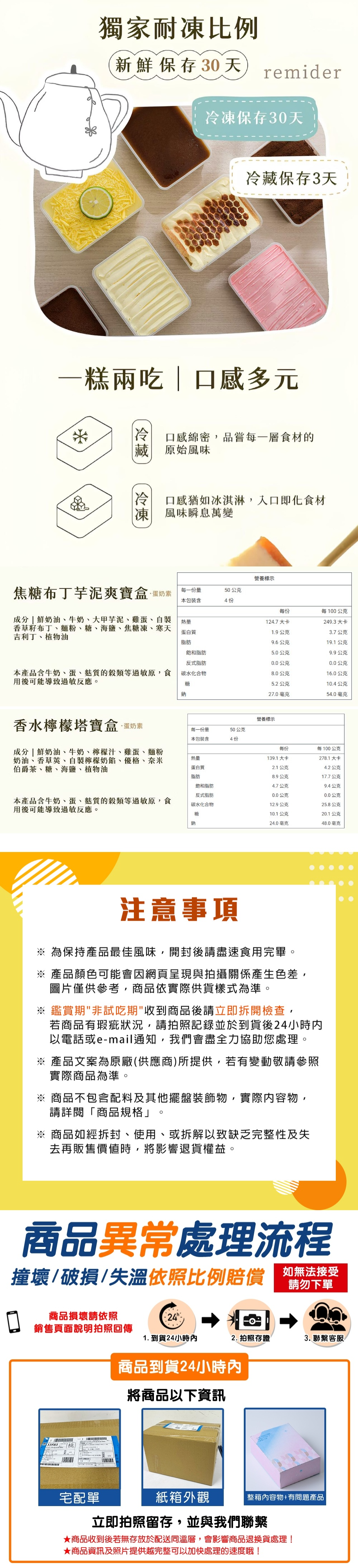商品組合/規格:焦糖布丁芋泥爽x1盒(200g/盒)+香水檸檬塔x1盒(200g/盒)