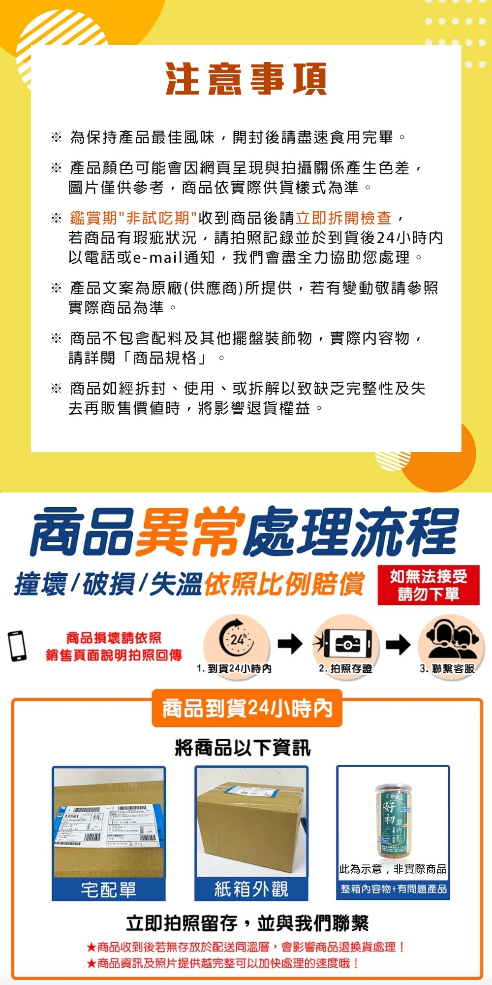 注意事項:1.如有膨包或破損請勿食用,並請與客服