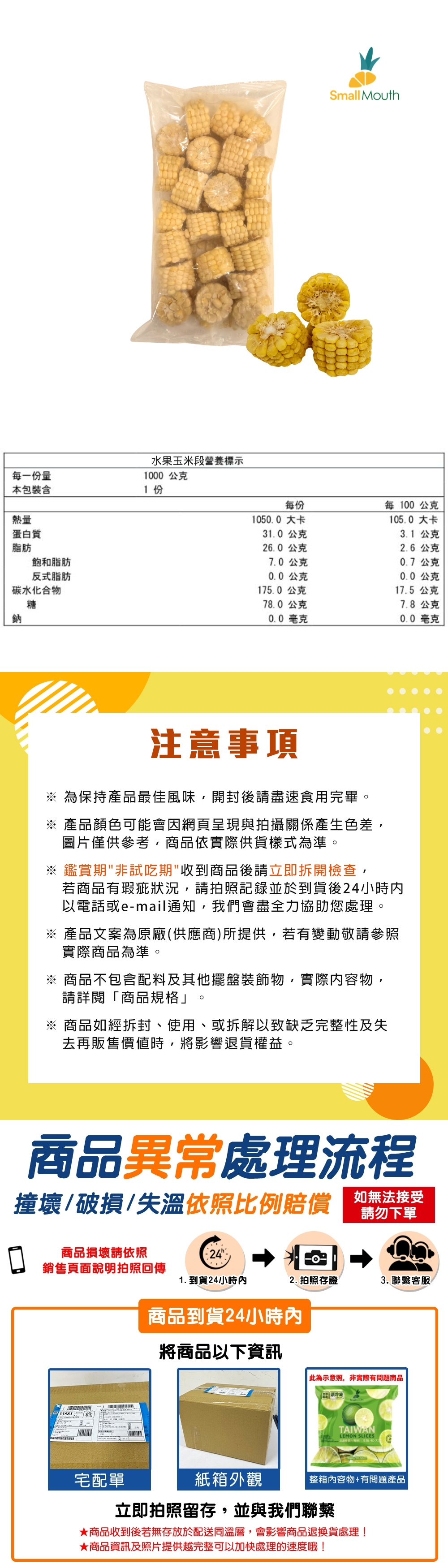 內容物成分(如含有豬、牛成分請加註國別):新鮮水果玉米