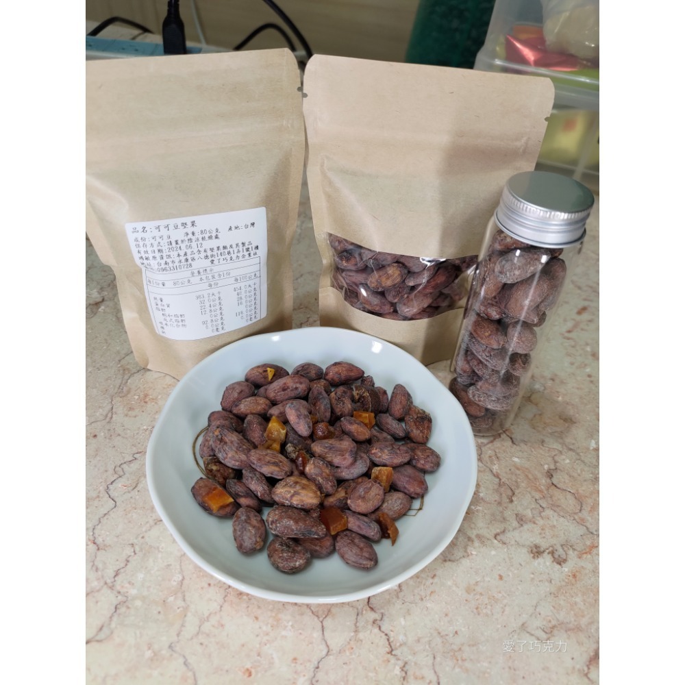 台灣小農自行生產的農產品,經過了無氧發酵,有氧發酵,日曬7-10天,熟成兩個月以上,在烘烤而成的可可豆堅果。無香精,無色素,無鹼化處理好,吃的安心。
