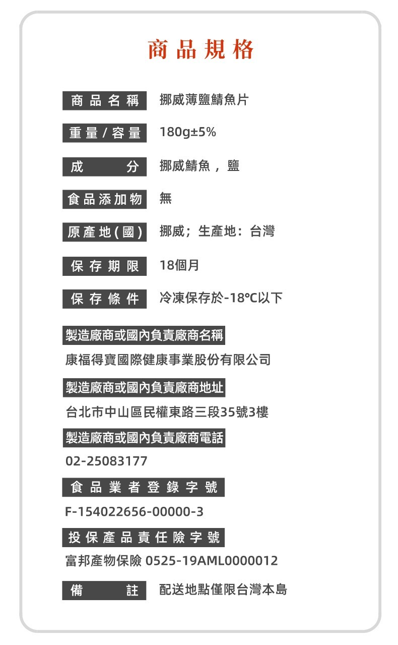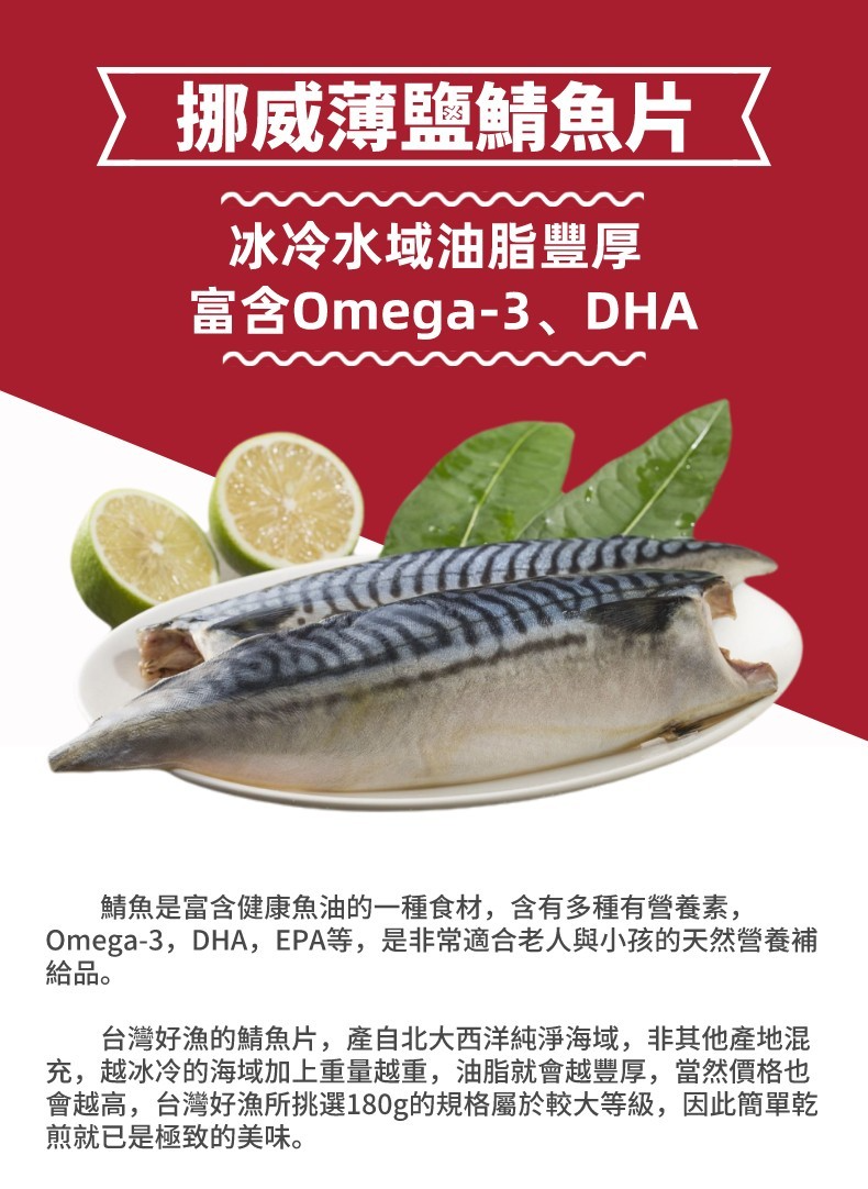【台灣好漁】挪威薄鹽鯖魚片(180g/包) x5包