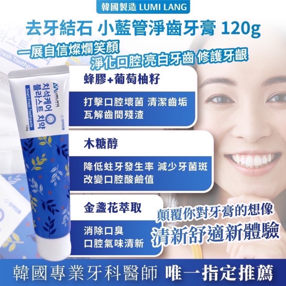 韓國🇰🇷製造 LUMI LANG 小藍管淨齒牙膏120g
