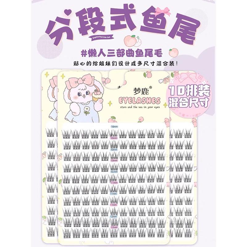 台灣🇹🇼出貨夢鹿懶人分段魚尾10排110段大容量细黑梗自然分段式 單簇假睫毛