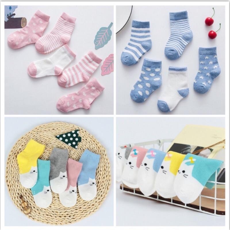 全棉 可愛寶寶襪!可愛星星波點條紋圓點寶寶襪 男女寶寶兒童襪中筒寶寶襪 童襪 一組五雙 (5雙入包裝) 棉襪 5入