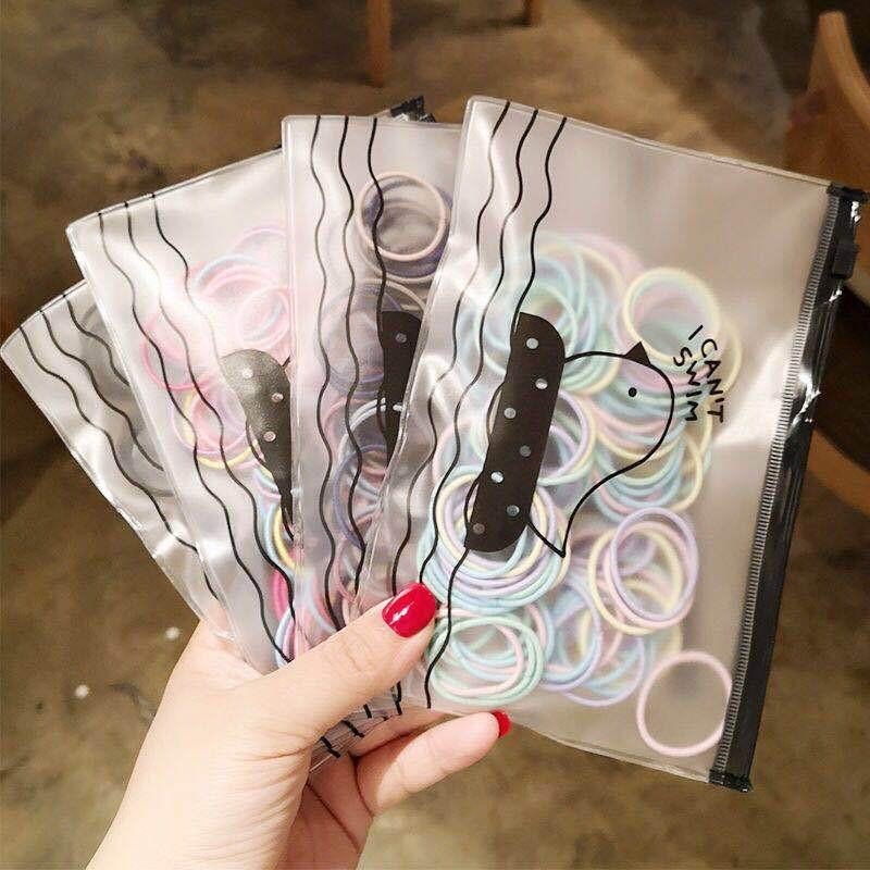 韓國高彈力髮圈100入 銅板價 送收納袋 兒童髮圈附收納袋