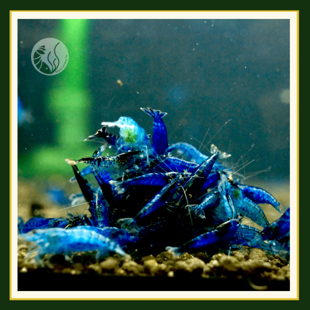 特色:由多齒新米蝦(俗稱:黑殼蝦)經人工繁殖的改良品種,身體遍佈著不均勻的深藍色斑。