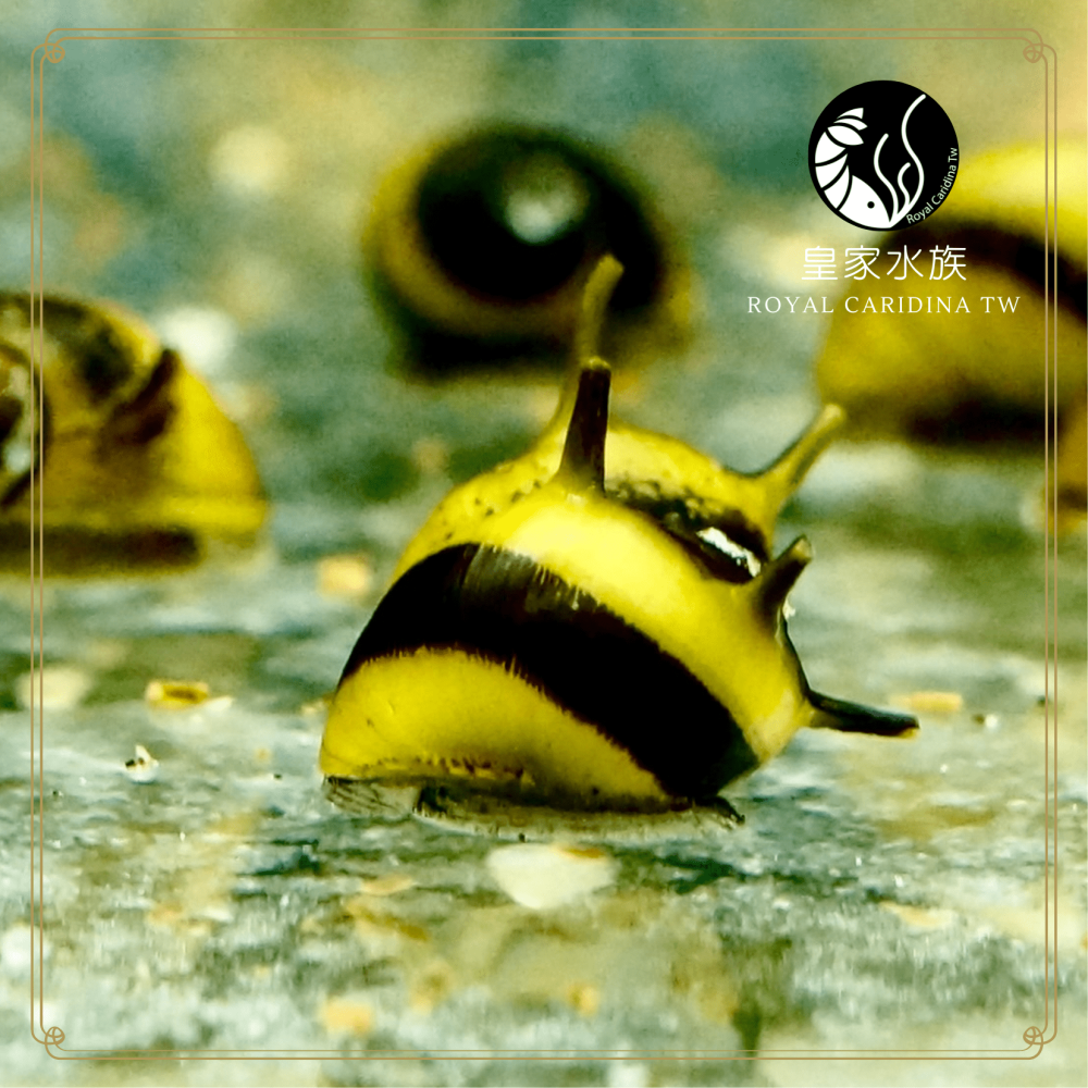 特色:蜜蜂角螺其外殼上有角,並分布著黃黑相間的彩色條紋,像是一隻可愛的蜜蜂,故而得名。