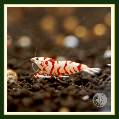 特色:為水晶蝦與虎紋蝦雜交延伸而來,身上帶有虎紋的紋路,非常美麗。建議飼養溫度維持在22 - 25℃之間。