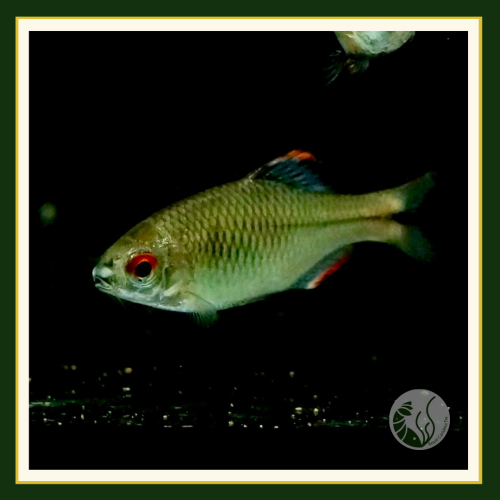 特色:俗名牛屎鯽,成熟雄魚的體色亮麗,體側的中央由臀鰭上方至尾鰭中央具有一藍黑色縱帶,背鰭及臀鰭緣為紅色與黑色兩列並排,外緣呈黑色,眼睛的上半部為紅色,極具觀賞價值。雌魚除了體側後部的淺黑色縱帶外,全身大致呈淺黃褐色,眼睛的顏色較淺。