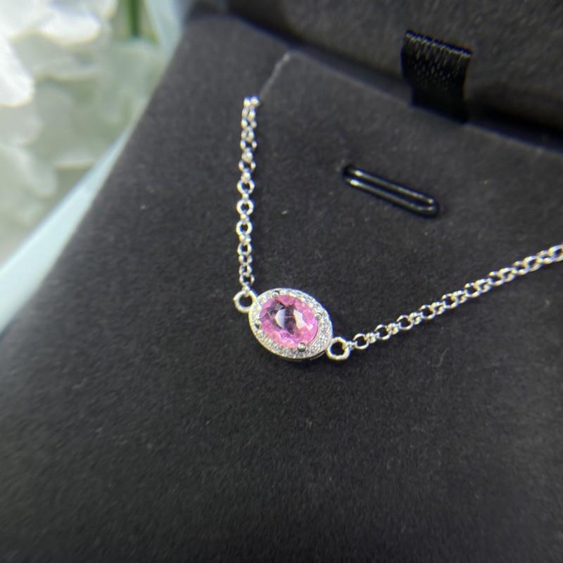 【艾爾莎寶石+】0.75ct 超美閃亮粉!天然無燒碧璽Tourmaline 925銀鍍厚白K 簡約款手鍊