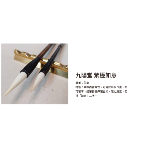 特色:柔軟而富彈性,可用於山水作畫,亦可習字、提筆作畫揮灑字揮灑自如,隨心所意,而得「如意」二字。