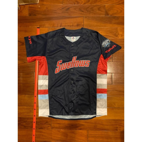 日本空運帶回 Majestic製造,無背號 標示尺寸M:衣長67cm、衣寬54cm 標示尺寸XL:衣長76cm、衣寬67cm 官方設計理念: 2021 年 CREW 隊服的顯著特徵是側面的彩條,其顏色包括紅色以及球隊過去使用過的其他顏色,代表燕子隊積累的歷史。 2021 CREW 帽子上的 YS 標誌和沙子也帶有彩條,表達了歷史之外的新可能性。