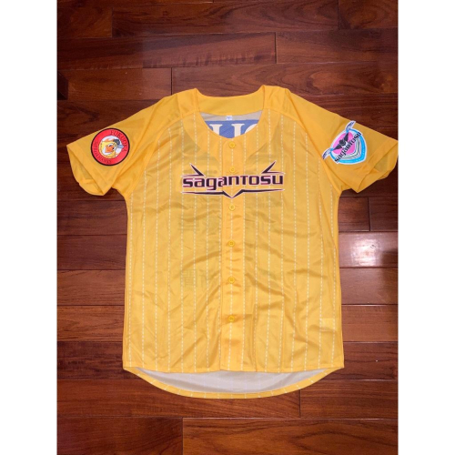 日本空運帶回 職棒軟銀鷹 & J-聯盟足球-鳥栖砂岩 聯名棒球罩衫 採用2015鷹之祭典 黃+條紋配色 尺寸L:衣長72cm、衣寬55cm