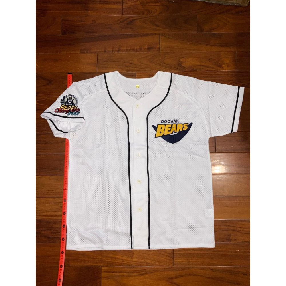 韓國職棒 斗山熊 全電繡 2001冠軍臂章 應援球衣 L (KBO 棒球 刺繡 罩衫 南韓 網格 洞洞 優勝)