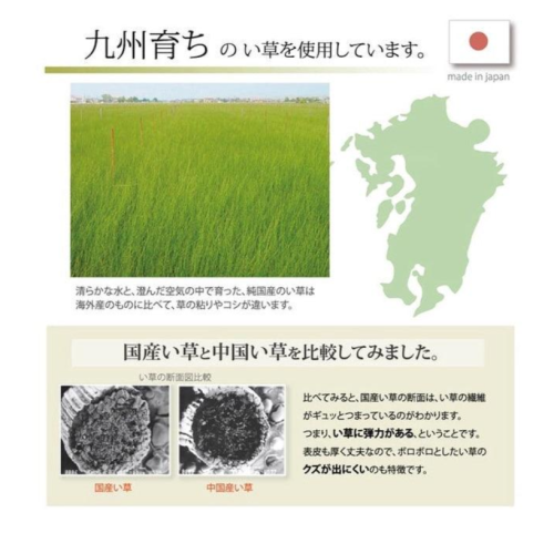 使用熊本縣八代燈心草(又稱蘭草)製作,燈心草可以淨化空氣,