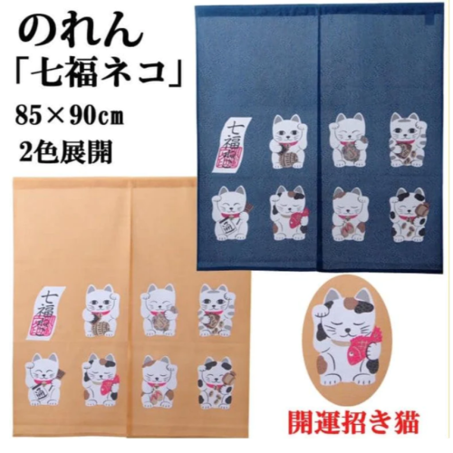 日本製 招財貓日式門簾-七福貓(橘短/藍短)