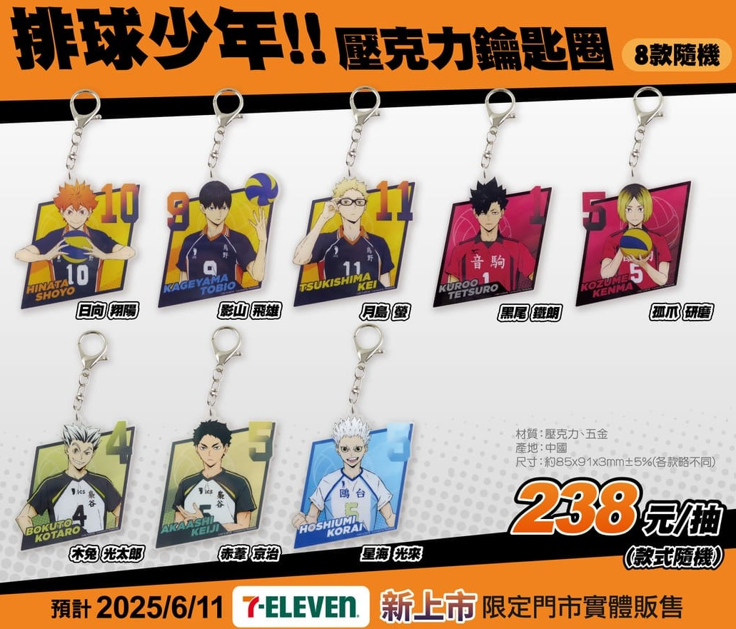 💎現貨馬上出💎 7-11 排球少年 壓克力鑰匙圈盲盒 共8款 (全新未拆盲盒) 可以試試手氣 !