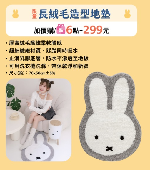 💎現貨馬上出💎 7-11 Miffy 米飛兔 長絨毛造型地墊 Miffy地墊