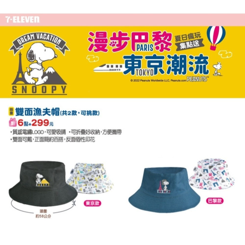 💎現貨馬上出💎7-11 史努比 雙面漁夫帽 巴黎款 (藍色) 🔥特價最便宜🔥