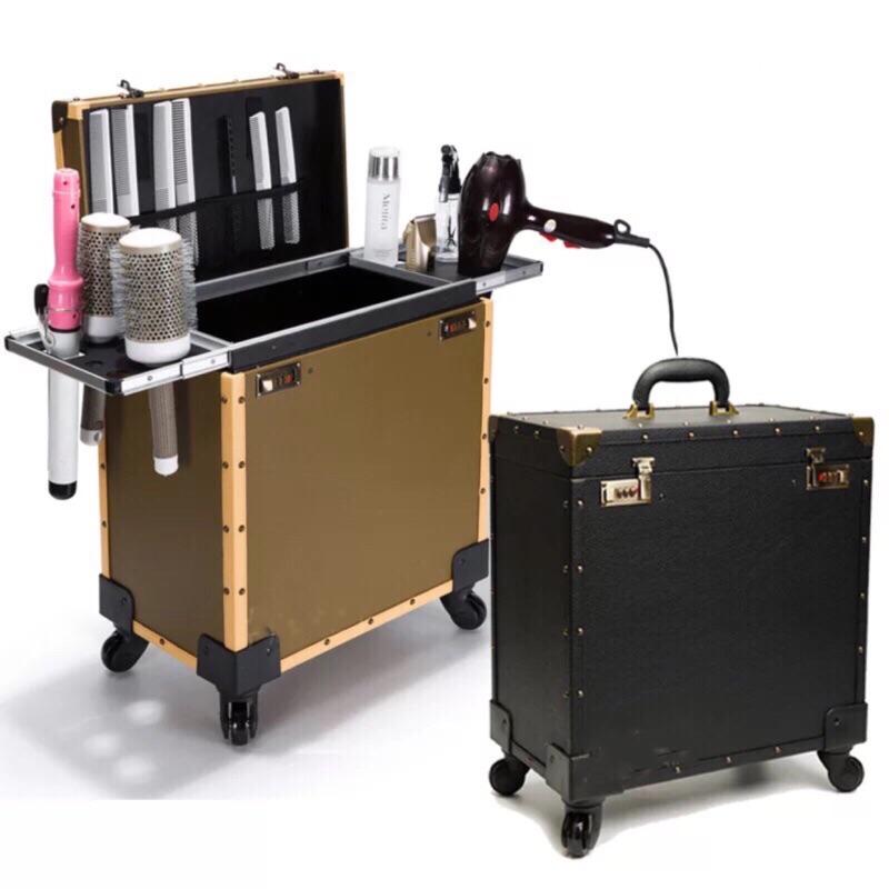 高檔美髮工具箱復古髮型師專用拉桿新款多功能推剪刀剪刀美容工具箱(小型)