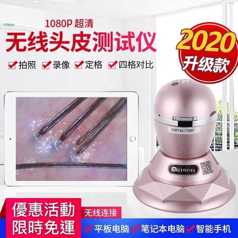 商品:頭皮檢測儀 品牌:EIBOYI 顏色:玫瑰金 使用設備:手機、平板 支援系統:Android、iOS 連接方式:內建WiFi 功能: 1.畫質Full HD 1080P (解析度1920*1080) 呈現真實影像。 2.Wi-Fi連結,無線操作。 3.固定式焦距,數位變焦最大800倍放大效果。 4.倍數200放大功能 5.可以在 App Store 和 Google Play 搜尋 Muchun App