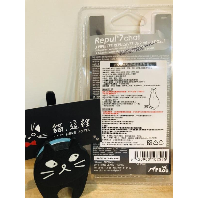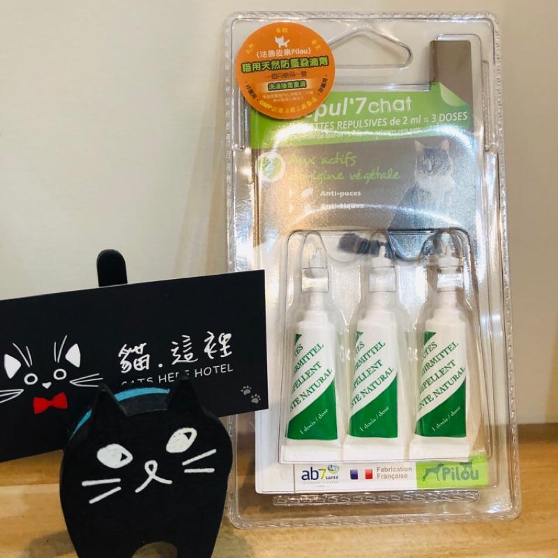 【貓咪用品】貓這裡 現貨 Pilou 法國皮樂 純天然防蚤蝨滴劑 非藥用除蚤滴劑-貓用(1ml x3管)