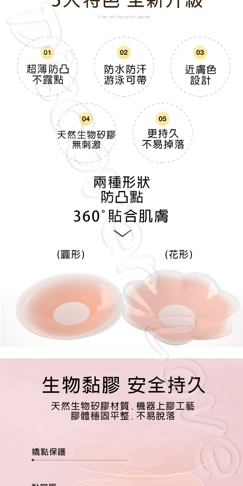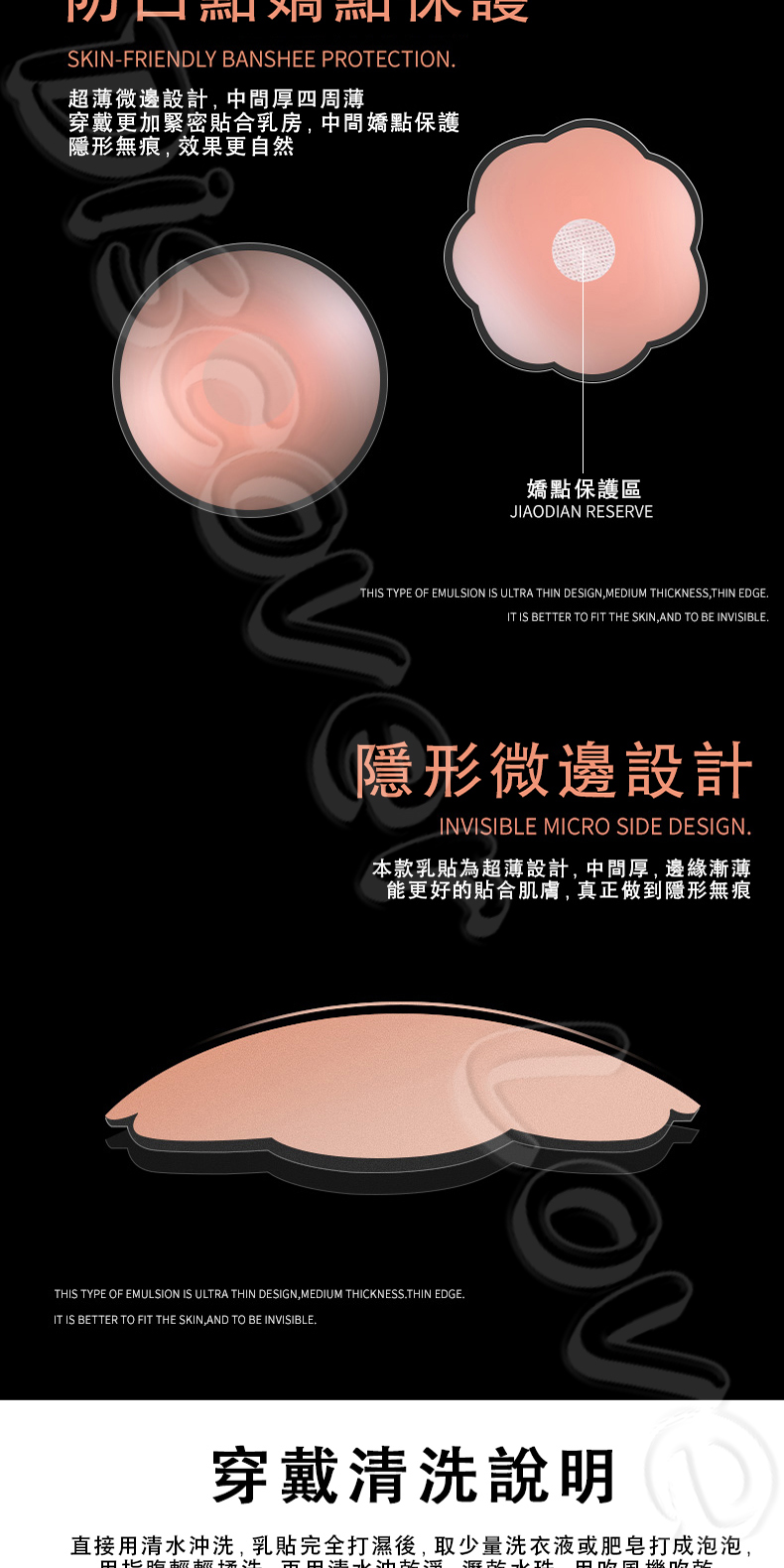 🔸防水防汗:具有一定的防水性,使得胸貼在濕潤環境下,也能保持穩固。