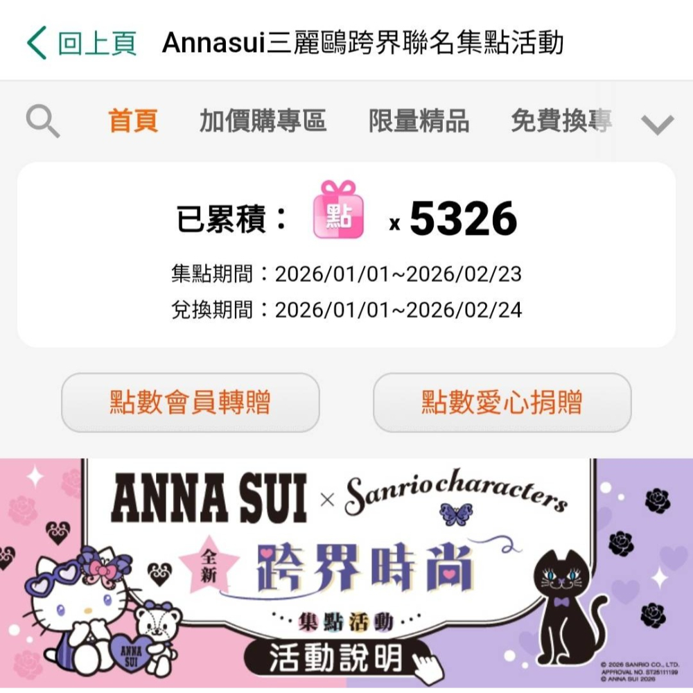(☆電子點數☆Annasui三麗鷗聯名集點/集點送)