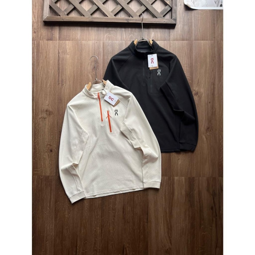On昂跑 Climate Shirt 休閒運動半拉式長T 黑色 米白*M-3XL