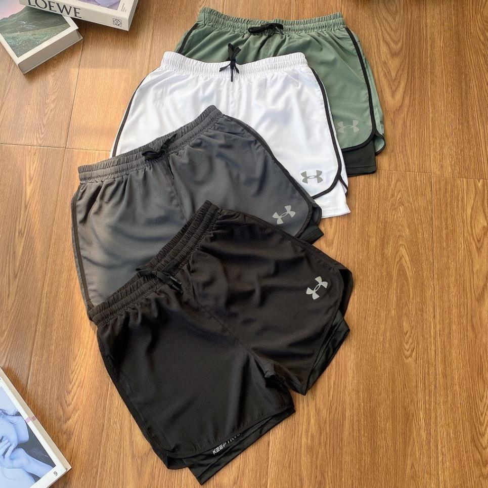 【季得運動】Under Armour安德瑪 反光字母印花 假兩件運動短褲 黑白灰綠 *M-2XL。50992B