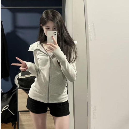 【季得運動】Lulu lemon 秋季灰白色標刺繡 短款 拉鍊外套 灰白色 *S-L。509107C
