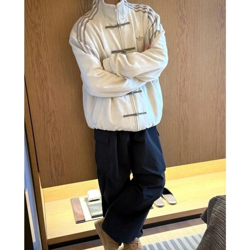 【季得運動】Adidas originals 蛇年限定新中式盤扣麂皮立領唐裝國風外套 白色 *S-XL。50978C