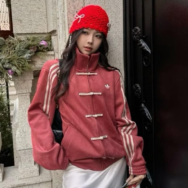 【季得運動】Adidas originals 蛇年限定新中式盤扣麂皮立領唐裝國風外套 紅色 *S-XL。50977C