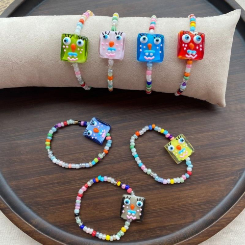 時尚潮流 可愛琉璃小怪獸 手創 卡通 串珠彈力 手鍊
