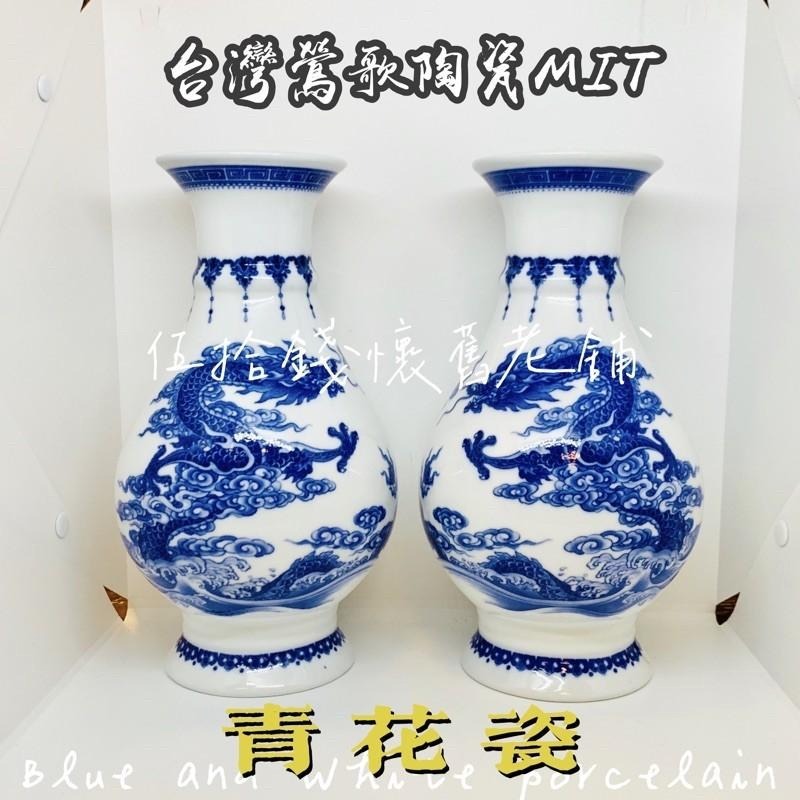 🤖伍拾錢 瓷器 鶯歌陶瓷『如意 青花瓷』10英寸 12英寸 14英寸 山水青龍 花瓶 花器 神桌 拜拜 宗教用品 青花