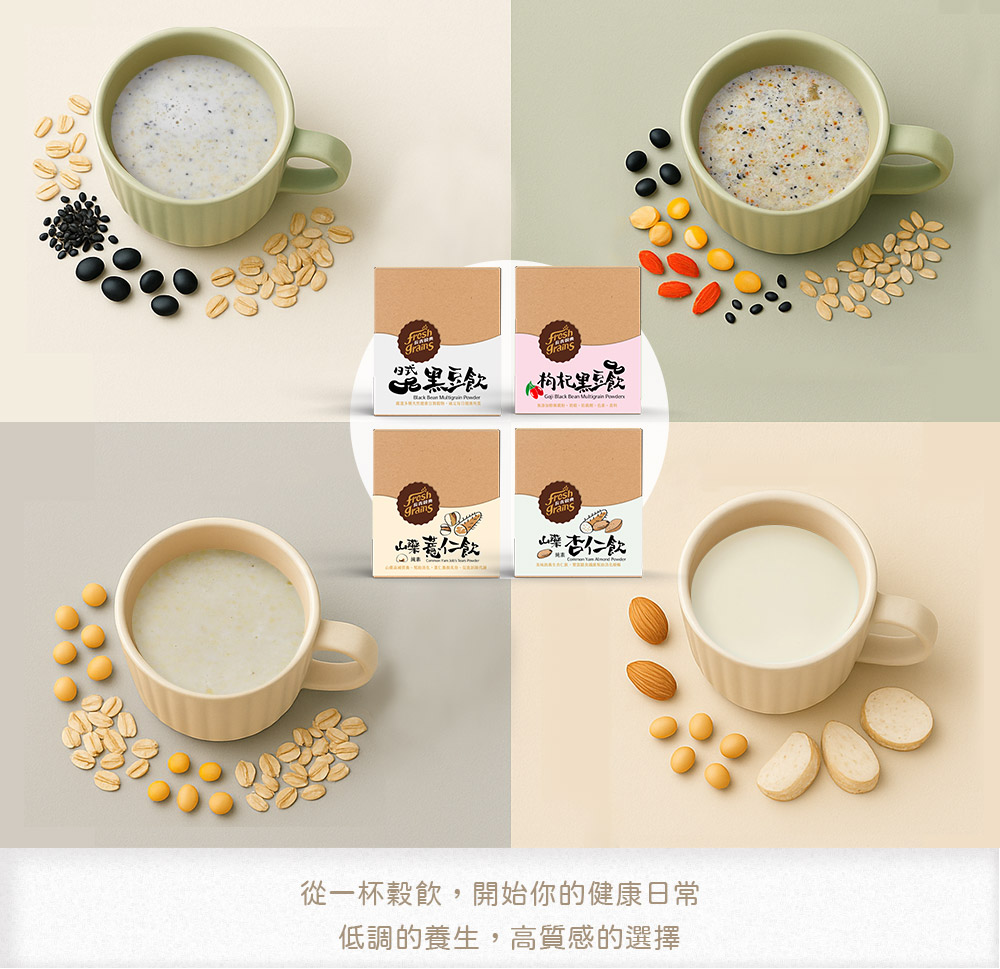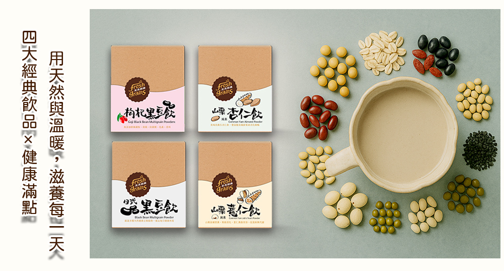 成分:綜合穀物(青仁黑豆、燕麥片、玉米(非基改)、枸杞、黑芝麻、糙米、薏仁、蕎麥、栗米、胚芽、紅豆、大麥、黃豆(非基改)、米豆、花豆、芡實、蓮子、綠豆、伏苓、准山、麥冬、白果、松子、百合、豌豆)、麥芽糊精、異麥芽寡糖、蔗糖、麥片粉、關華豆膠、黑糖(蔗糖、糖蜜)、岩鹽