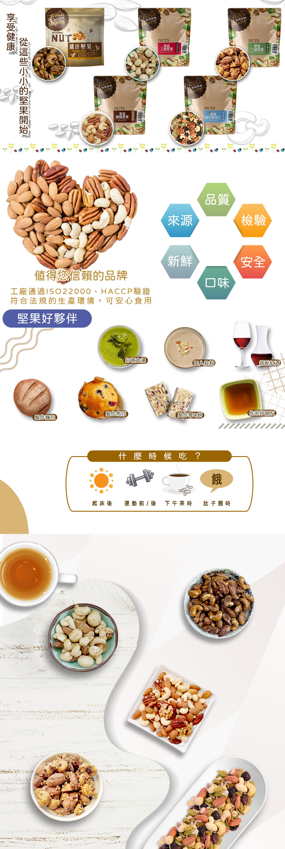皇家原味堅果:杏仁果、腰果、核桃、夏威夷果、胡桃
