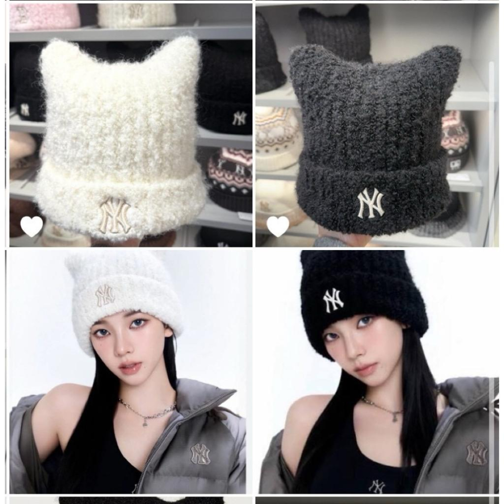 韓國 MLB 貓耳針織帽 泰迪絨 毛圈毛帽 惡魔角帽子 護耳針織帽 冬季穿搭 明星同款 Karina aespa