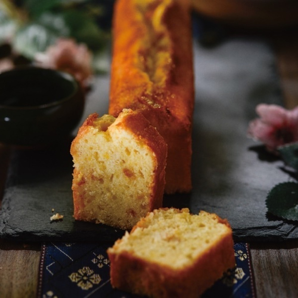 蜜漬橘皮,讓扎實的蛋糕中吃得到香橙果餡,特有的橙果香風味帶給蛋糕層次再提升的味蕾滋味