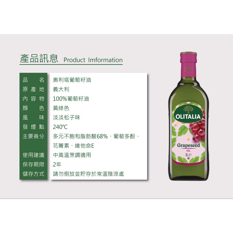 #原裝進口 #義大利 #葡萄籽油 #100% #不飽和脂肪酸 #Omega-6
