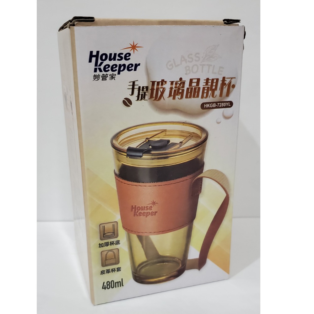 妙管家晶靚杯 玻璃隨行杯 480ml 含皮革杯套