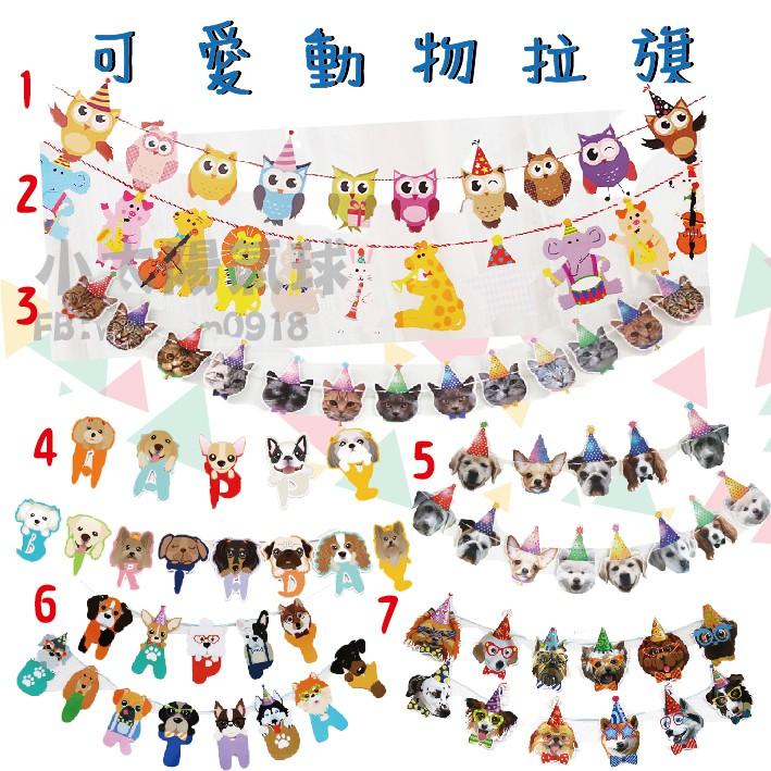 ★現貨-台灣★/狗狗生日掛旗 貓 拉旗 生日拉旗 寵物 周歲布置 毛小孩 周歲佈置 粉色 派對 貓頭鷹 動物