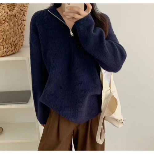 S.C 優衣館 秋冬新款 韓版 超萌 針織連帽 拉鍊 連帽上衣 長袖上衣 修飾 百搭 素色 減齡款 現貨女裝
