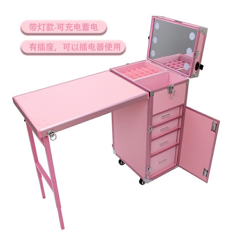 老吳網路拍賣 統一編號 88534108 台灣店家/醫師/工業桌/到府彩妝 美甲 專業美甲箱帶燈便攜紋繡工具箱萬向